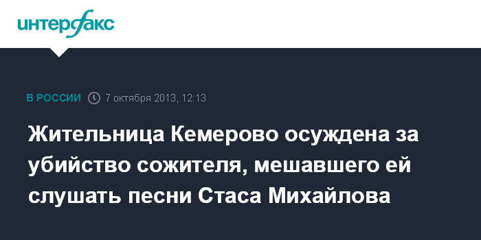 Жительница Кемерово осуждена за убийство сожителя, мешавшего ей слушать песни Стаса Михайлова
