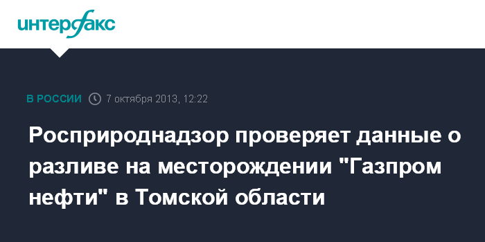 Росприроднадзор проверяет данные о разливе на месторождении "Газпром нефти" в Томской области