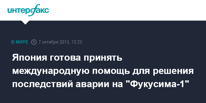 Глава японского правительства отметил, что помощь, о которой он говорит, необходима для прекращения утечек радиоактивной воды из аварийной АЭС "Фукусима-1".