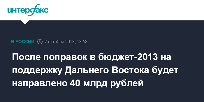 После поправок в бюджет-2013 на поддержку Дальнего Востока будет направлено 40 млрд рублей