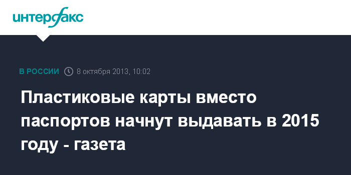 Пластиковые карты вместо паспортов начнут выдавать в 2015 году - газета