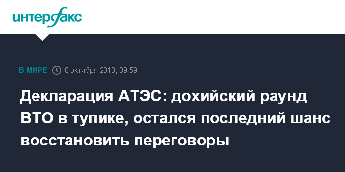 Декларация АТЭС: дохийский раунд ВТО в тупике, остался последний шанс восстановить переговоры