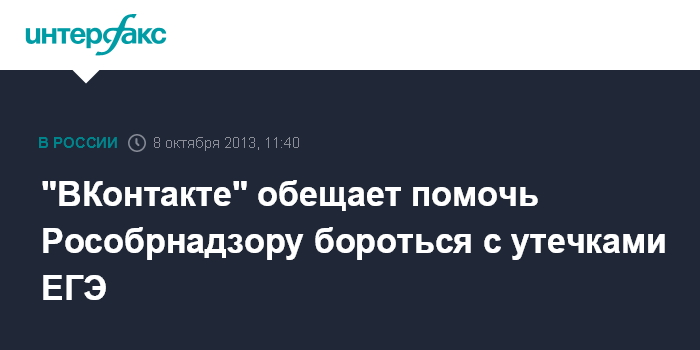 Москва. 8 октября. INTERFAX.RU - Социальная сеть "ВКонтакте" поможет не допускать в 2014 г. утечек ответов единого государственного экзамена (ЕГЭ), сообщил Рособрнадзор.