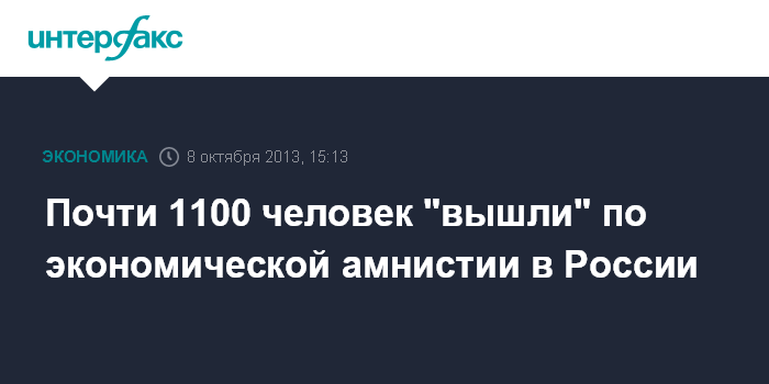 Почти 1100 человек "вышли" по экономической амнистии в России