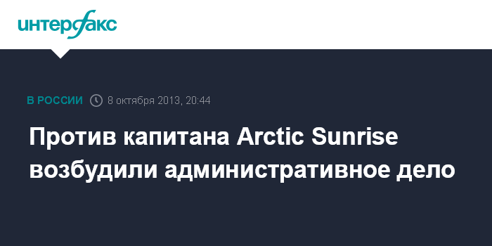 Мурманск. 8 октября. INTERFAX.RU - Капитан судна Greenpeace Arctic Sunrise Питер Уилкокс привлечен к административной ответственности за неповиновения береговой охране России, сообщили "Интерфаксу" в пограничном управлении ФСБ России по Мурманской области. Административное производство в отношении Вилкокса было возбуждено по ст. 19.4 ("Неповиновение законному распоряжению должностного лица органа, осуществляющего государственный надзор") КоАП.