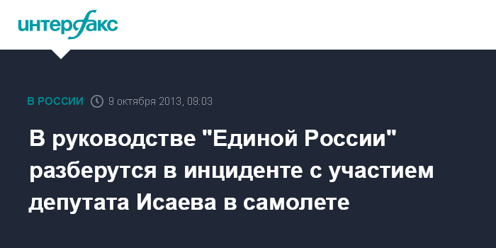 В руководстве "Единой России" разберутся в инциденте с участием депутата Исаева в самолете