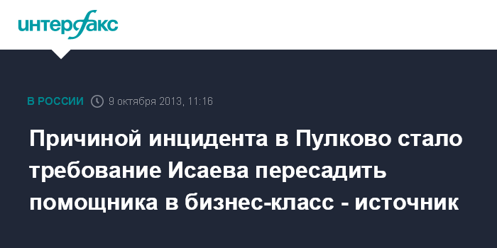 Причиной инцидента в Пулково стало требование Исаева пересадить помощника в бизнес-класс - источник
