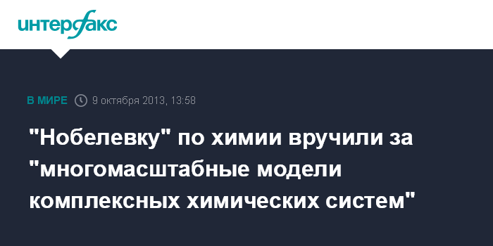 Как объявили в среду в Нобелевском комитете в Стокгольме, премия присуждена за "развитие многомасштабных моделей комплексных химических систем".