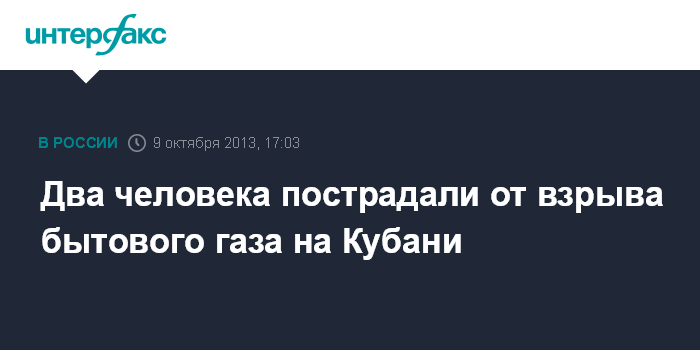 Краснодар. 9 октября. INTERFAX.RU - В частном доме в городе Лабинске произошел взрыв бытового газа с последующим возгоранием.