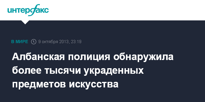 Вашингтон. 10 октября. ИНТЕРФАКС - Полиция Албании конфисковала в Тиране около 1077 икон, фресок и других предметов искусства, датируемых с XV по середину XX веков, которые были ранее украдены из церквей и культурных центров на юго-востоке Албании и в Македонии, сообщает в среду Associated Press.