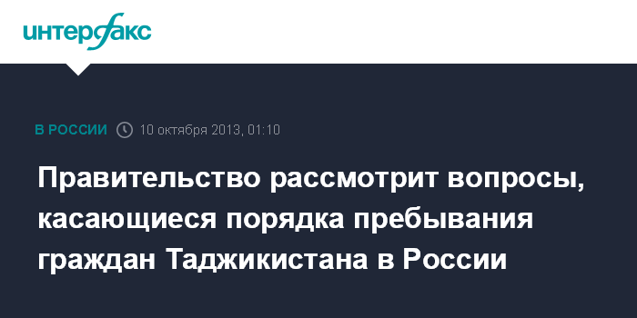 Правительство рассмотрит вопросы, касающиеся порядка пребывания граждан Таджикистана в России