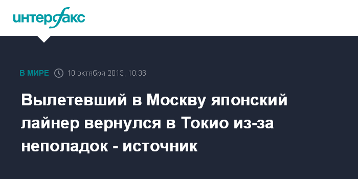Вылетевший в Москву японский лайнер вернулся в Токио из-за неполадок - источник