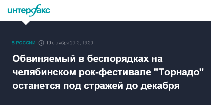 Обвиняемый в беспорядках на челябинском рок-фестивале "Торнадо" останется под стражей до декабря