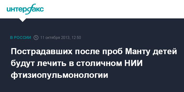 Пострадавших после проб Манту детей будут лечить в столичном НИИ фтизиопульмонологии