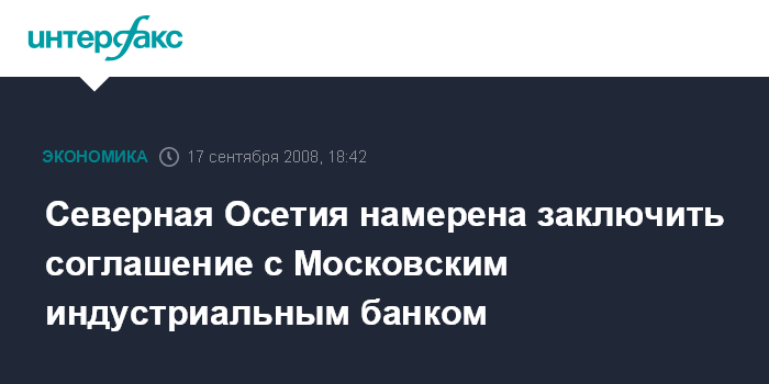 Северная Осетия намерена заключить соглашение с Московским индустриальным банком