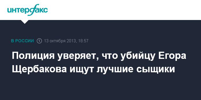 Москва. 13 октября. INTERFAX.RU - Лучшие столичные сыщики подключились к расследованию дела об убийстве Егора Щербакова, заявил журналистам и.о. начальника УВД по ЮАО ГУ МВД РФ по Москве Александр Половинко.