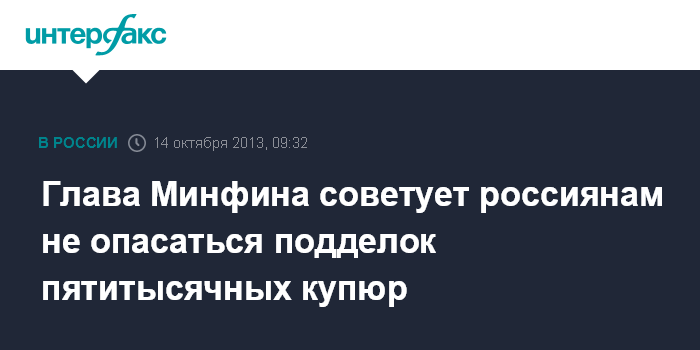 Москва. 14 октября. INTERFAX.RU - Глава Минфина Антон Силуанов призвал россиян не беспокоиться по поводу прекращения приема пятитысячных купюр в отдельных банкоматах.
