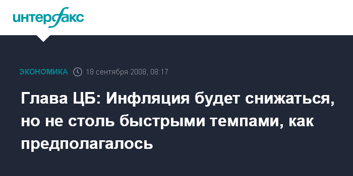 Москва. 18 сентября. INTERFAX.RU - Инфляция будет снижаться, но не столь быстрыми темпами, как предполагалось, сообщил председатель ЦБ РФ Сергей Игнатьев.