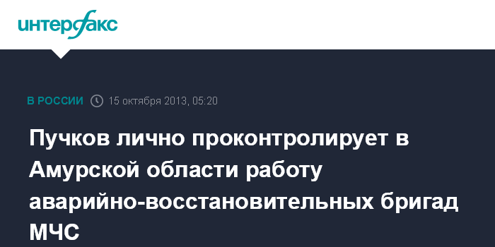 Благовещенск. 15 октября. ИНТЕРФАКС - Глава МЧС России Владимир Пучков прибыл в Амурскую область, пострадавшую от наводнения, сообщила "Интерфаксу" официальный представитель МЧС Ирина Россиус.