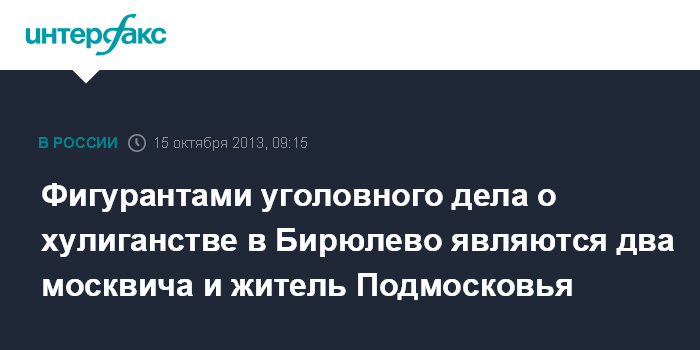 Фигурантами уголовного дела о хулиганстве в Бирюлево являются два москвича и житель Подмосковья