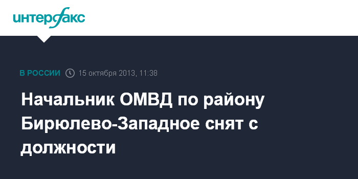 Начальник ОМВД по району Бирюлево-Западное снят с должности