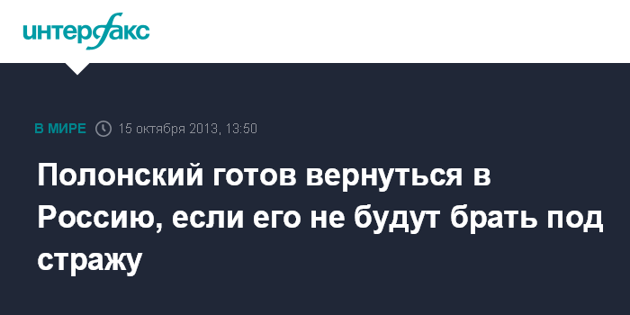Полонский готов вернуться в Россию, если его не будут брать под стражу