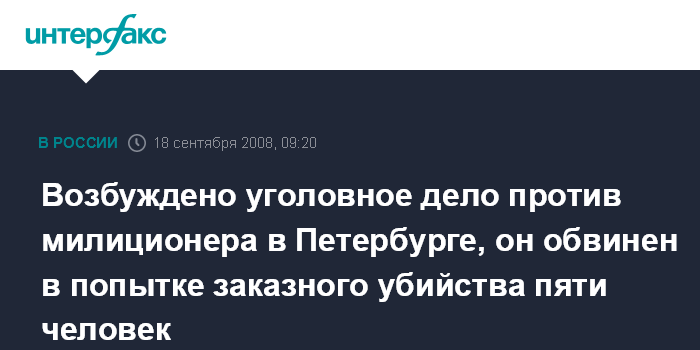 Возбуждено уголовное дело против милиционера в Петербурге, он обвинен в попытке заказного убийства пяти человек