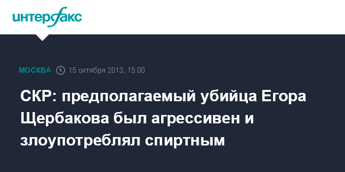 СКР: предполагаемый убийца Егора Щербакова был агрессивен и злоупотреблял спиртным