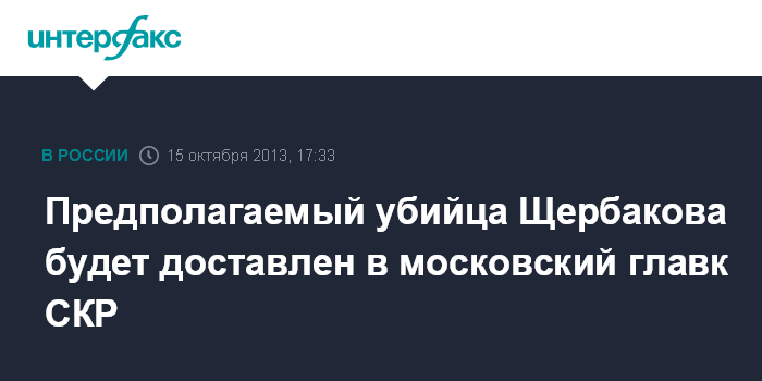 Предполагаемый убийца Щербакова будет доставлен в московский главк СКР