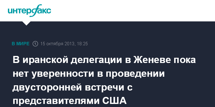 Женева. 15 октября. INTERFAX.RU - Двусторонняя встреча иранской и американской делегаций на полях переговоров с "шестеркой" в Женеве маловероятна .
