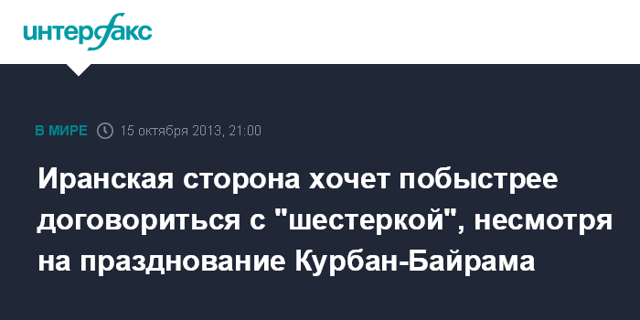 Иранская сторона хочет побыстрее договориться с "шестеркой", несмотря на празднование Курбан-Байрама