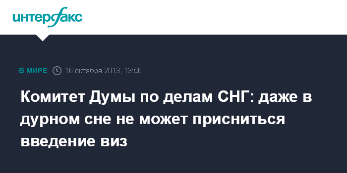 Москва. 16 октября. INTERFAX.RU - В профильном комитете Госдумы выступают категорически против введения виз на пространстве СНГ.
