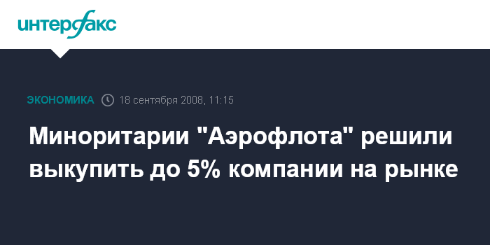 Миноритарии "Аэрофлота" решили выкупить до 5% компании на рынке