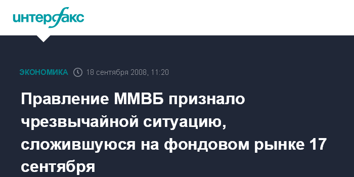 Правление ММВБ признало чрезвычайной ситуацию, сложившуюся на фондовом рынке 17 сентября