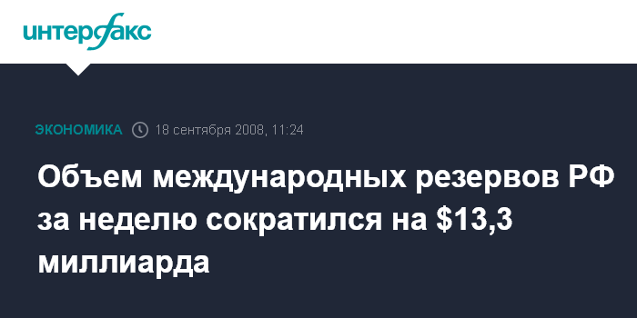 Еще 5 сентября их объем составлял $573,6 миллиарда. Таким образом, за неделю они уменьшились на $13,3 миллиарда.