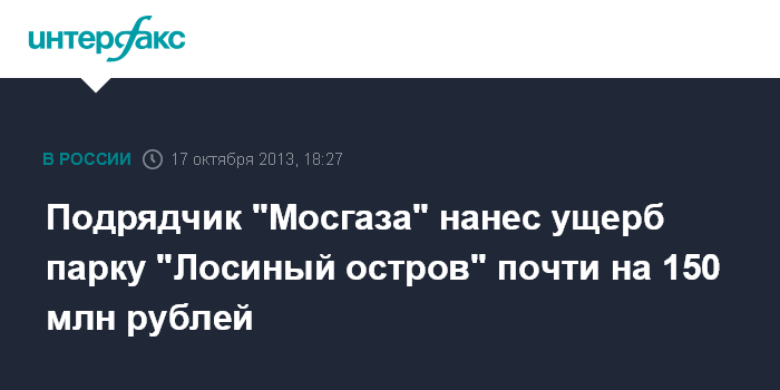 Москва. 17 октября. INTERFAX.RU - Минприроды требует возбудить уголовные дела в отношении подрядчика "Мосгаза" - ЗАО "КапСтройРеконструкция", которое занимается строительством на территории национального парка "Лосиный остров".
