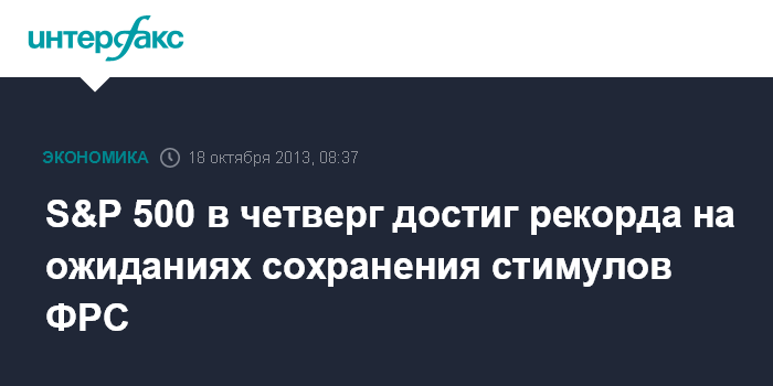 "Сворачивание стимулирования кажется сейчас намного дальше, чем кто-либо ожидал восемь недель назад и, может быть, даже пару недель назад", - заявил главный инвестиционный директор Greenwood Capital Inc. Уолтер Тодд. По его словам, это ограничивает процентные ставки и дает больше ликвидности рискованным активам, таким как акции. "Люди вновь стали сосредотачивать внимание на динамике отдельных компаний, как это обычно происходит в сезон отчетности", - добавил эксперт.