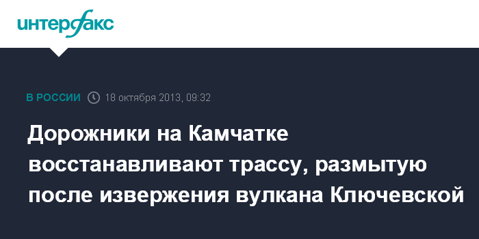 Петропавловск-Камчатский. 18 октября. INTERFAX.RU - Восстановительные работы идут на участке трассы районного значения Мильково - Усть-Камчатск, размытом в результате извержения Ключевского вулкана, сообщает в пятницу пресс-служба правительства Камчатского края.