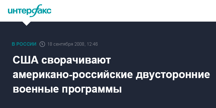 Вашингтон. 18 сентября. INTERFAX.RU - Администрация США приостановила двусторонние военные программы с Россией, и рассматривает другие возможные варианты свертывания сотрудничества из-за действий Москвы на Кавказе, сообщил заместитель госсекретаря США Уильям Бернс.