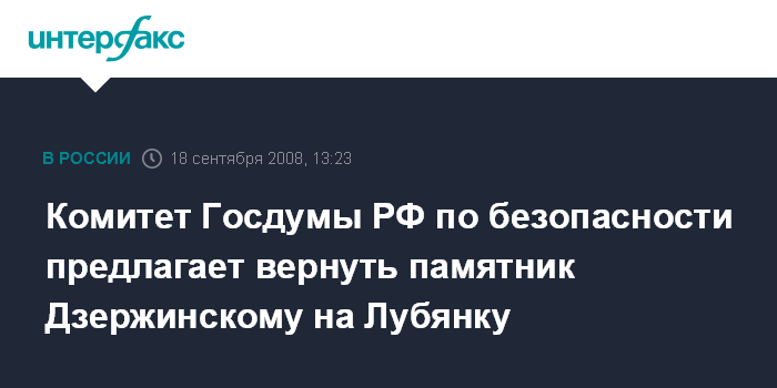 Комитет Госдумы РФ по безопасности предлагает вернуть памятник Дзержинскому на Лубянку