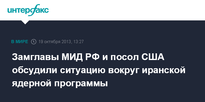 Замглавы МИД РФ и посол США обсудили ситуацию вокруг иранской ядерной программы