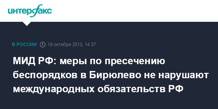 МИД РФ: меры по пресечению беспорядков в Бирюлево не нарушают международных обязательств РФ