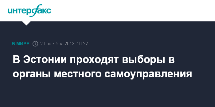 Таллин. 20 октября. INTERFAX.RU - Выборы в органы местного самоуправления начались в Эстонии, передает корреспондент "Интерфакса". Избирательные участки будут открыты с 9:00 до 20:00 по местному времени (10:00-21:00 мск), сообщили "Интерфаксу" в Республиканской избирательной комиссии.