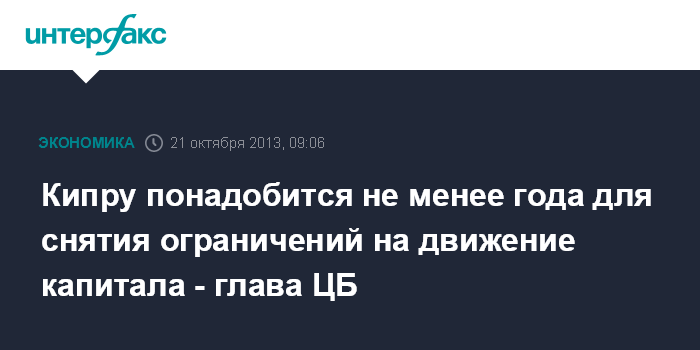 Кипру понадобится не менее года для снятия ограничений на движение капитала - глава ЦБ