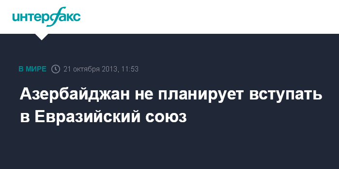 Азербайджан не планирует вступать в Евразийский союз