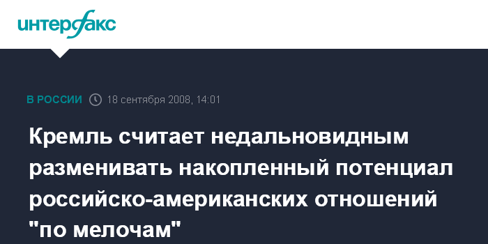 Кремль считает недальновидным разменивать накопленный потенциал российско-американских отношений "по мелочам"