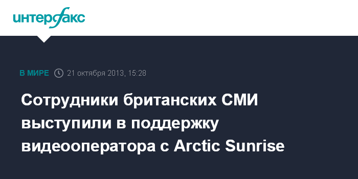 Лондон. 21 октября. INTERFAX.RU - Журналисты ряда крупных британских СМИ подписали петицию в поддержку видеооператора судна Arctic Sunrise Кирона Брайана, находящегося в мурманском СИЗО.