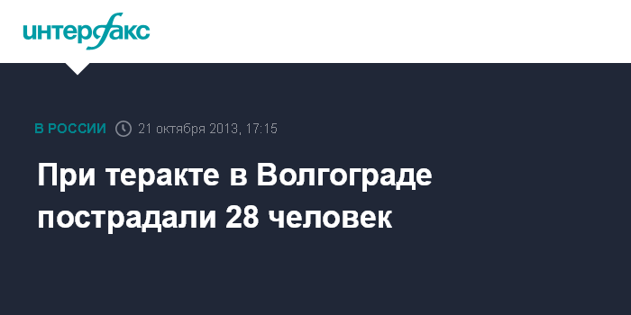 Волгоград. 21 октября. INTERFAX.RU - Число пострадавших от теракта в Волгограде увеличилось до 28 человек, сообщила агентству "Интерфакс" руководитель пресс-службы правительства региона Екатерина Голод.