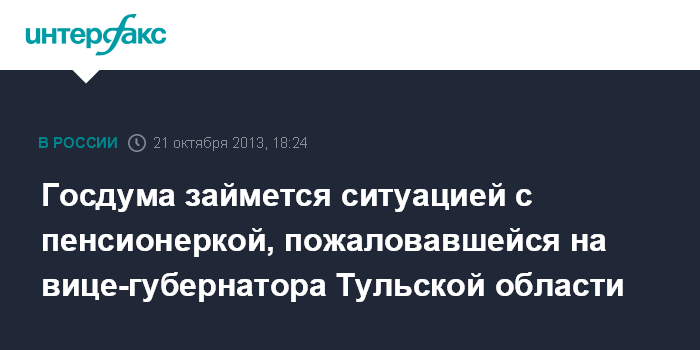Госдума займется ситуацией с пенсионеркой, пожаловавшейся на вице-губернатора Тульской области