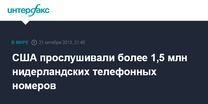 Брюссель. 21 октября. INTERFAX.RU - Агентство национальной безопасности (АНБ) США получала данные о 1,8 млн телефонных абонентов из Нидерландов и об их возможном местонахождении.